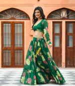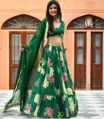 Green Silk Printed Lehenga Set new